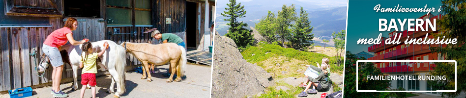 Den solrige ferieby Runding ligger midt i Naturpark Oberbayern Wald i Sydtyskland – smukt omgivet af blomstrende enge, skyggefulde skove og bløde bakker. Og på dette idylliske sted kan familien tilbringe et par dage med total afslapning, sjove aktiviteter og masser af kvalitetstid sammen. Når I ankommer, kan I starte eftermiddagen med at udforske hotellets grønne omgivelser og faciliteter – her kan børnene trygt løbe frit mellem hestefolde, boldbaner, legeplads og det kreative legerum. Familienhotel Runding er det perfekte sted for jer, der ønsker at give familien en ferieoplevelse i det sydtyske Bayern – og på hotellet ved man præcis, hvad børnefamilier sætter mest pris på: sjove lege, mulighed for børnepasning, all inclusive med masser af lækker mad og drikke ad libitum samt en særlig børnebuffet.